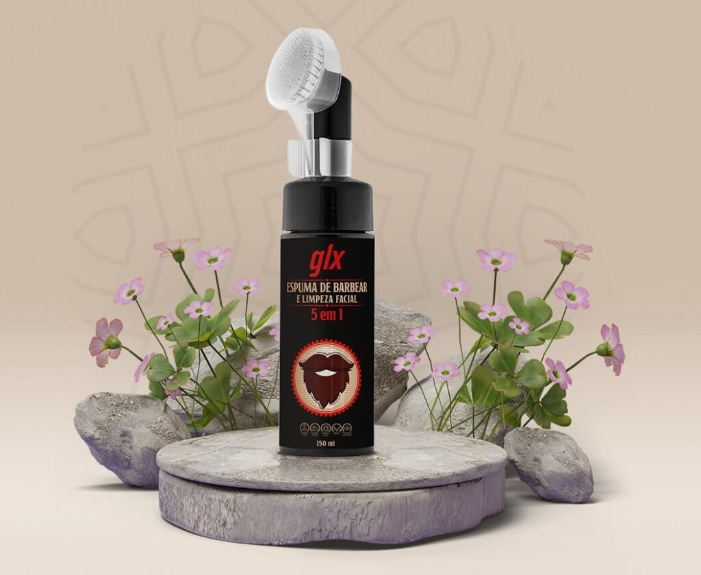 Embalagem Inovadora para o Homem Moderno: Espuma de Barbear e Limpeza Facial 5 em 1 da GLX.