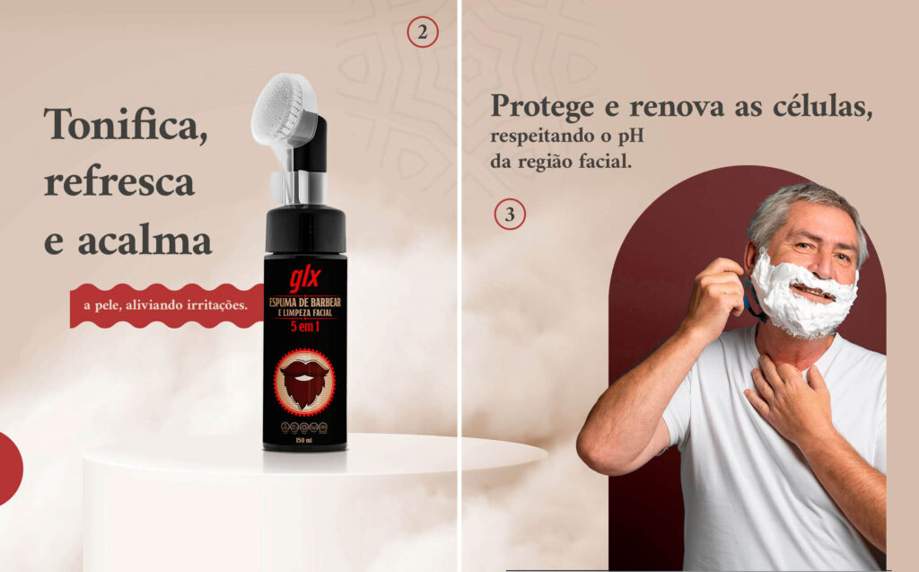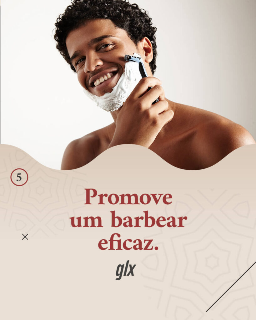 O homem contemporâneo busca praticidade, mas também valoriza o cuidado pessoal. Por entender isso, a GLX desenvolveu uma fórmula multifuncional para um produto que vai além do barbear. Oferecendo limpeza facial profunda, hidratação, tonificação, ação antioxidante e equilíbrio da flora cutânea, tudo em uma única aplicação.